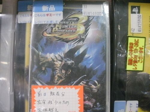 いよいよ明日発売の モンスターハンターポータブル3rd そんな中・・・・とある近所のゲームショップでは既に発売されていた 衝撃のプレミア価格 14800円!! もう・・・なんというかモンハン難民を食い物にしてる価格ですねこれ 9月頃に当方のブログで今予…