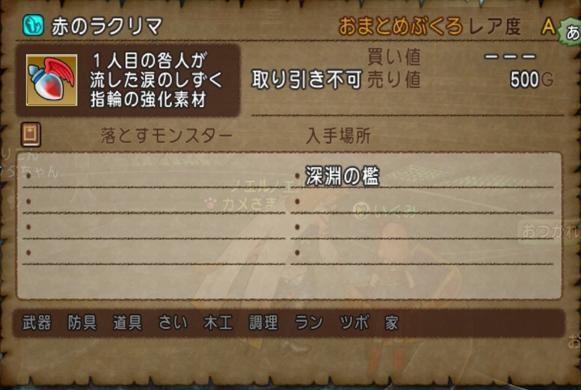 必要な素材、赤いラクリマ30個
