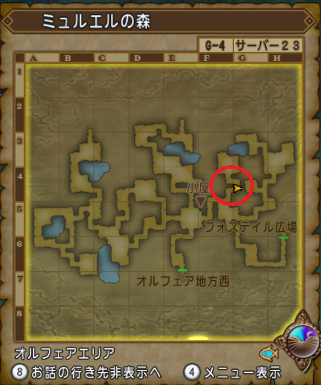 ベホマスライムはミュルエルの森G4付近に一本道周辺にいるっス!