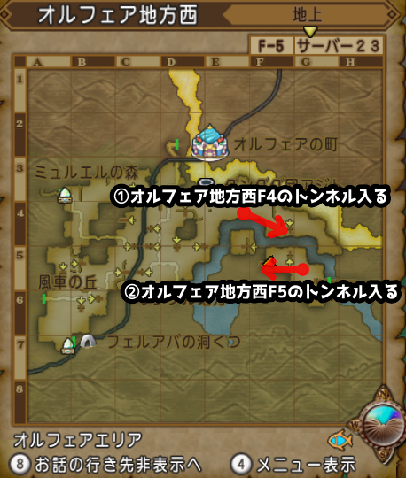 これ書いてる途中で気づいたんだけどオルファの丘からオルフェア地方西F5のトンネルに行った方が早いわ....ってブログの中の人が言ってました