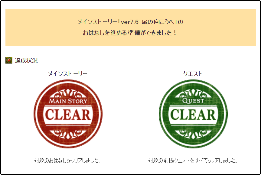 これにてバージョン7.6前期対象の前提クエスト全てクリア